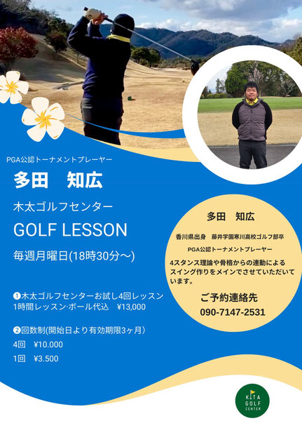 木太ゴルフセンターでは、プロのコーチによるレッスンを開いています。