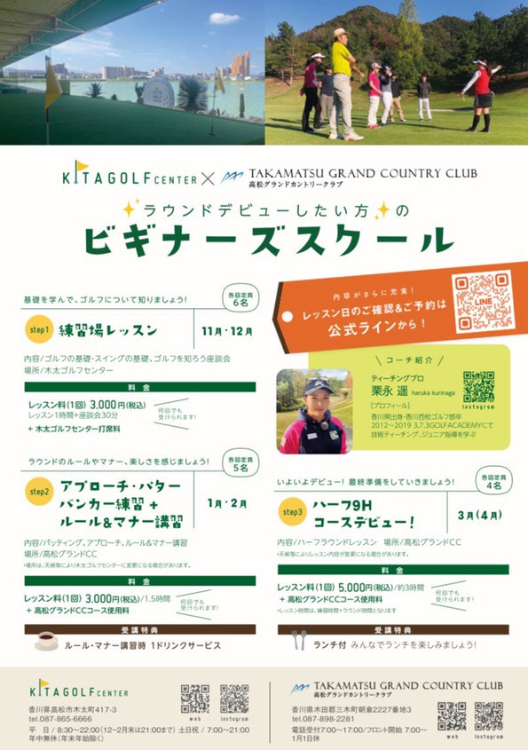 ※木太ゴルフセンターの4回レッスンご希望の旨をコーチにお伝え下さい。